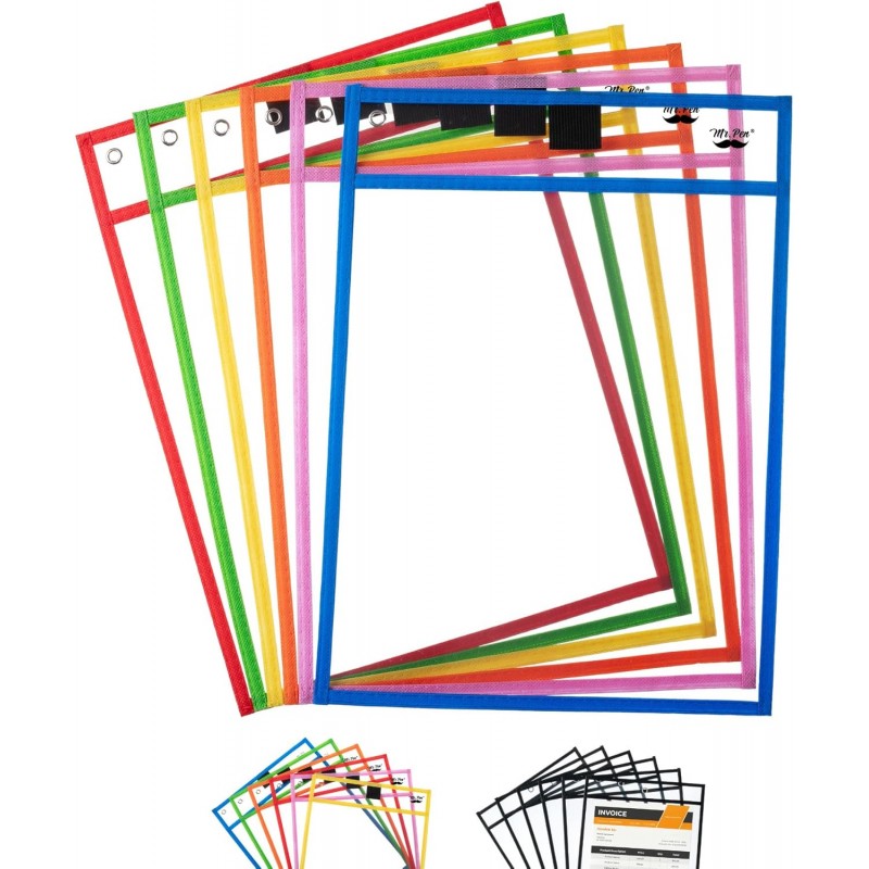 6 pochettes réutilisables et effaçables à sec + 2 feutres avec un côté effaceur.
